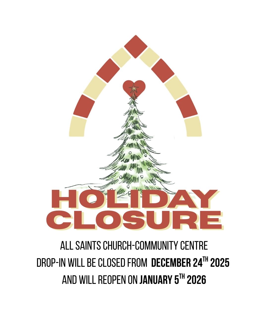 Please be advised All Saints Church-Community Centre will be closed for the holidays from Wednesday, December 24th 2025 and will reopen on Monday, January 5th 2026. ![]()